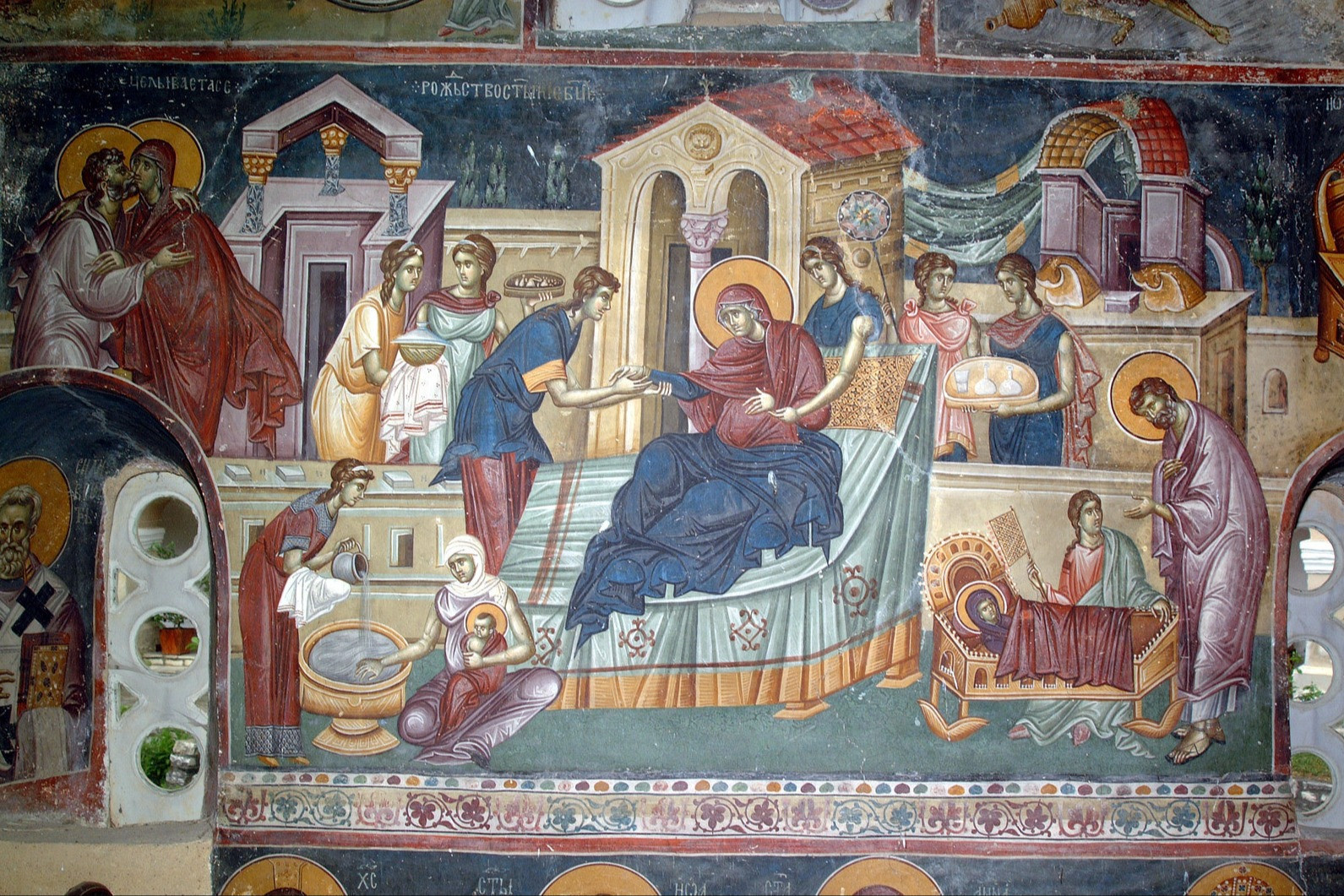 До наших дней дошла роспись собора Рождества Богородицы Ферапонтова монастыря, которую в 1502 году выполнил великий иконописец Дионисий. Это фреска над главным входом, которая изображает святую Анну на ложе; купель; приходящих поклониться Рожденной жен и дев с сосудами в руках; Иоакима и Анну с Девой Марией на руках.
